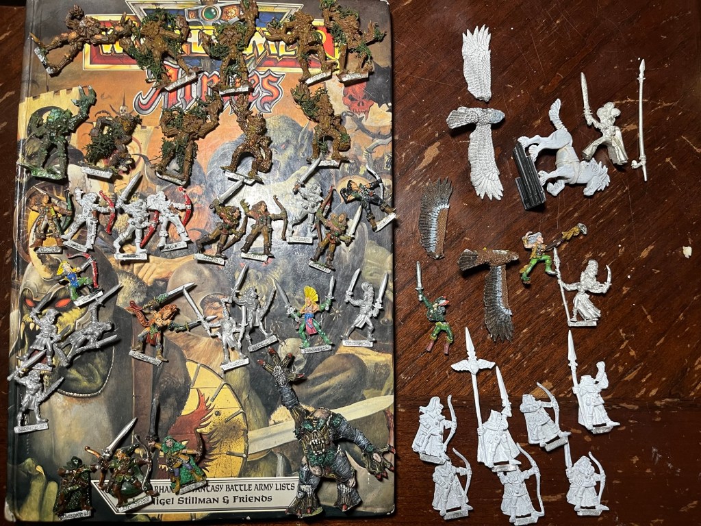 On my end, I’ve received the bulk of my Wood Elves army in the mail—all classic metal sculpts. I’ve spent some time stripping old paint jobs (some of them pretty rough… relics from long-forgotten battles, no doubt). There’s something meditative about cleaning them up and prepping them for a fresh coat. The forest spirits deserve better.